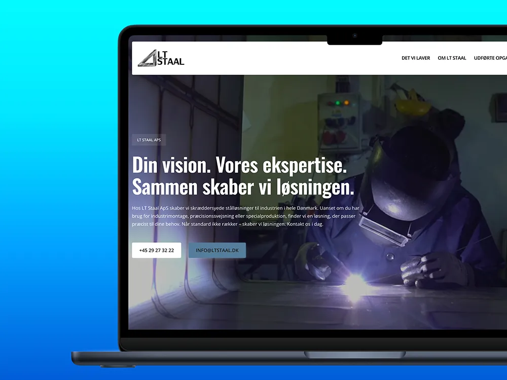 En moderne og SEO-optimeret hjemmeside med fokus på brugervenlighed, hastighed og en visuel præsentation af LT Staals løsninger og projekter.