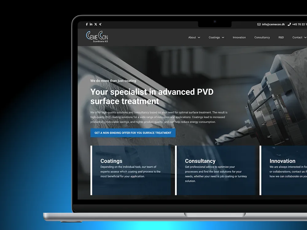 CemeCon.dk fik et redesign med klar navigation, stærke CTA’er og et brugervenligt system, der gør det nemt for teamet selv at opdatere sitet.